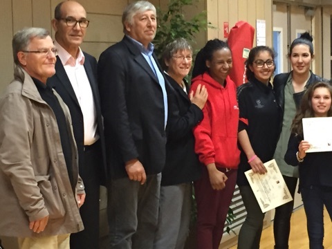 L'Assemblée générale élective de la ligue de judo des Hauts-de-Seine s'est tenue le jeudi 2 juin 2016 au palais des sports Marcel Cerdan à Levallois. A cette occasion, deux athlètes féminines de l'ASVCM judo ont été mises à l'honneur pour leur participation à la Coupe de France par équipes minimes : Miguerlande JEAN-FRANCOIS et Meyssane RAHMI. Un diplôme leur a été remis ainsi qu'une carte cadeau "ADIDAS" de la valeur de 50 euros. Meyssane RAHMI en photo ci-contre (3ème en partant de la droite). Bravo à elles!