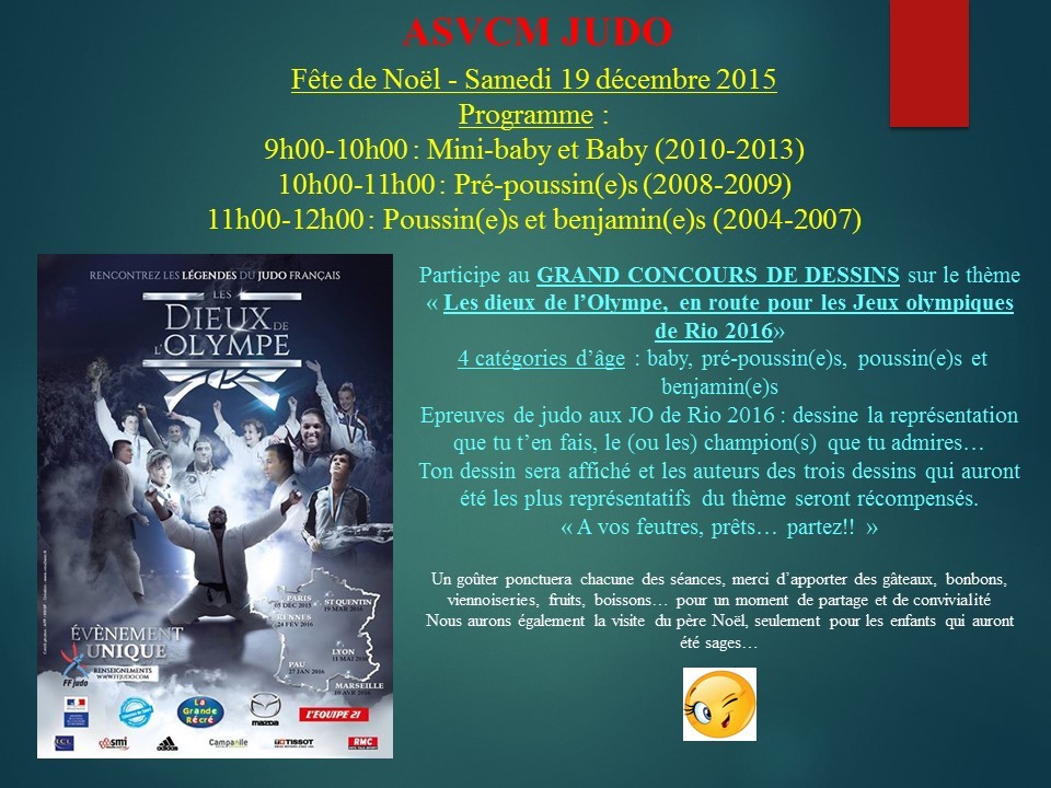 L'ASVCM judo organise sa traditionnelle fête de Noël, le samedi 19 décembre 2015.