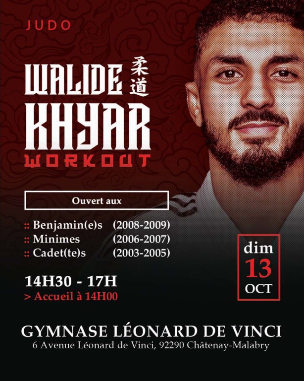 RDV à Châtenay-Malabry avec Walide pour le "KHYAR Workout" le dimanche 13 octobre 2019 au gymnase Léonard de Vinci de 14h00 à 17h00.