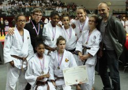 Carla ROBERT(-48kg), Sarah HARACHI (-52kg), Kathleen JEAN-PIERRE et Lamia MOUTIQ (-57kg), Aurore FIEROBE (-63kg), ainsi que Morgane DUCHENE et Maureen GOB (+63kg) sont parvenues à se hisser sur la troisième marche du podium du championnat de France par équipes cadettes qui s'est déroulé le WE dernier à l'Institut du judo. Les filles s'imposent face à Dunkerque au premier tour (3 victoires à 2), se défont de Sarrebourg au second tour (4 victoires à 1). Elles échouent en 8ème de finale contre AJBM (2 victoires à 3).