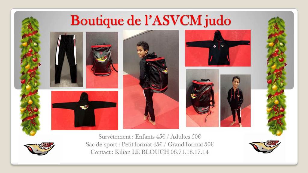 Noël approche... L'ASVCM judo vous propose le survêtement et le sac de sport aux couleurs du club.