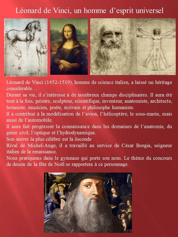 Léonard de Vinci (1452-1519), homme de science italien, a laissé un héritage considérable…
