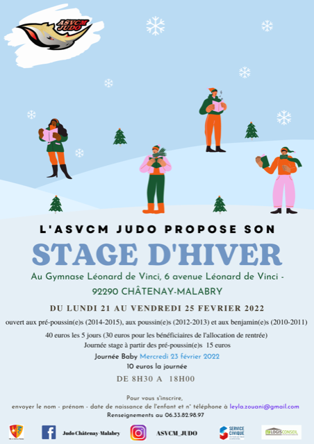 Stage au gymnase Léonard de Vinci de 8h30 à 18h00 tous les jours du lundi 21 au vendredi 25 février 2022.