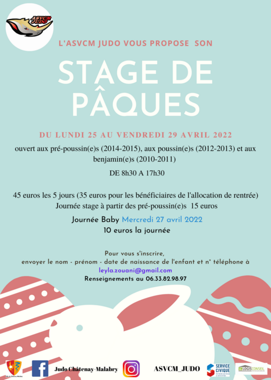 Le club organise un stage pendant les vacances de Pâques, du lundi 25 au vendredi 29 avril 2022.